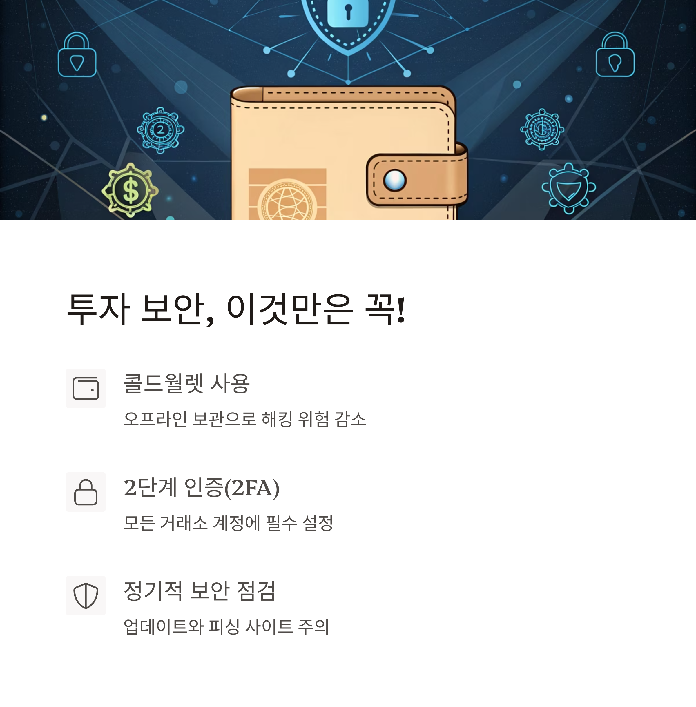 디지털 자산 투자에서는 보안이 가장 중요한 요소 중 하나입니다. 핫월렛과 콜드월렛을 구분하여 핫월렛은 거래에, 콜드월렛은 장기 보관에 사용하는 것이 좋습니다. 2단계 인증과 같은 보안 기능을 강화하여 자산을 보호해야 하며, 안전한 거래소와 플랫폼을 선택하는 것이 중요합니다. 해킹, 피싱 공격 등을 피하기 위해 정기적인 보안 점검과 패스워드 관리가 필요합니다. 안전한 환경에서 디지털 자산을 관리하는 것이 장기적인 투자 성공의 열쇠입니다.