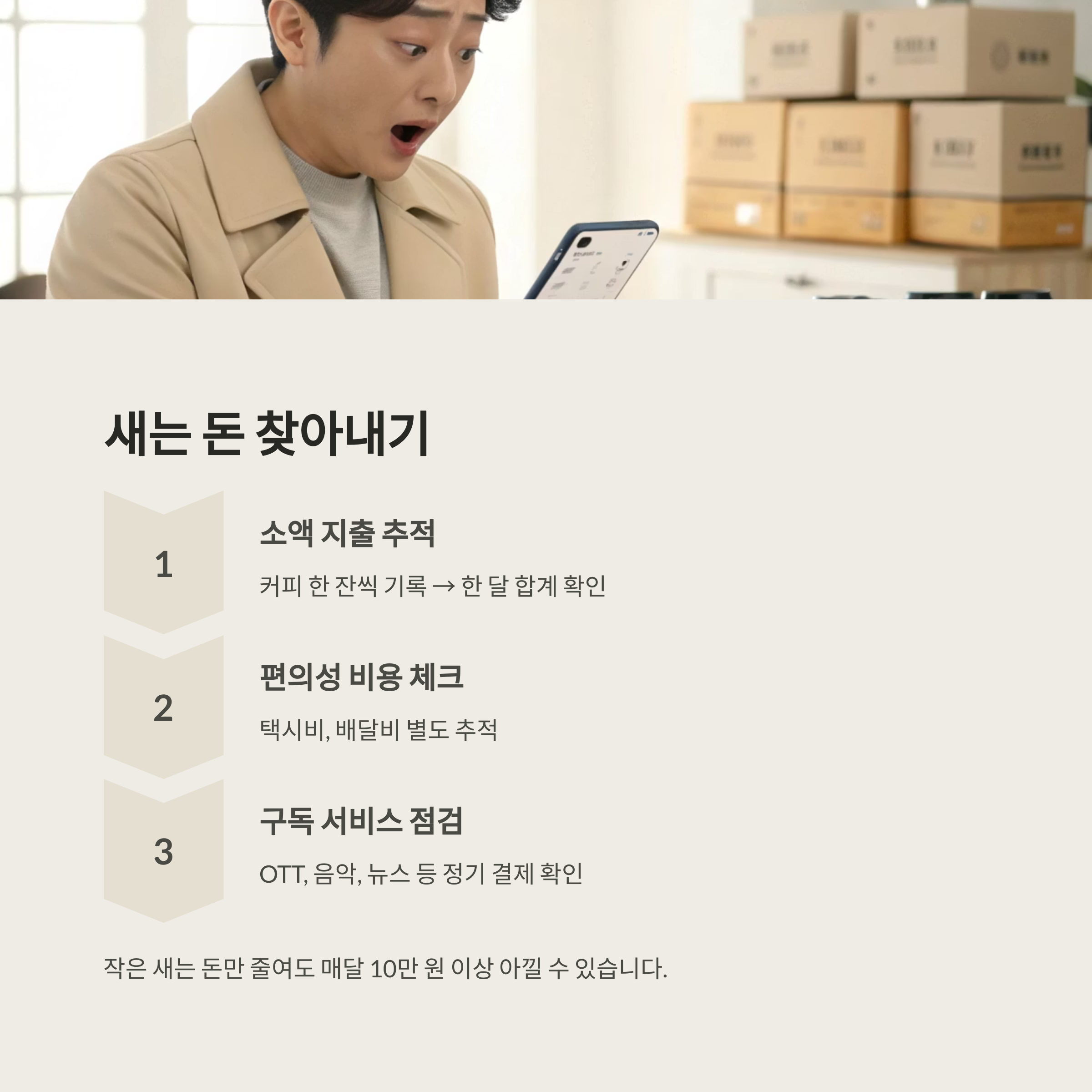 "작은 새는 돈만 줄여도 매달 10만 원 이상 아낄 수 있습니다."