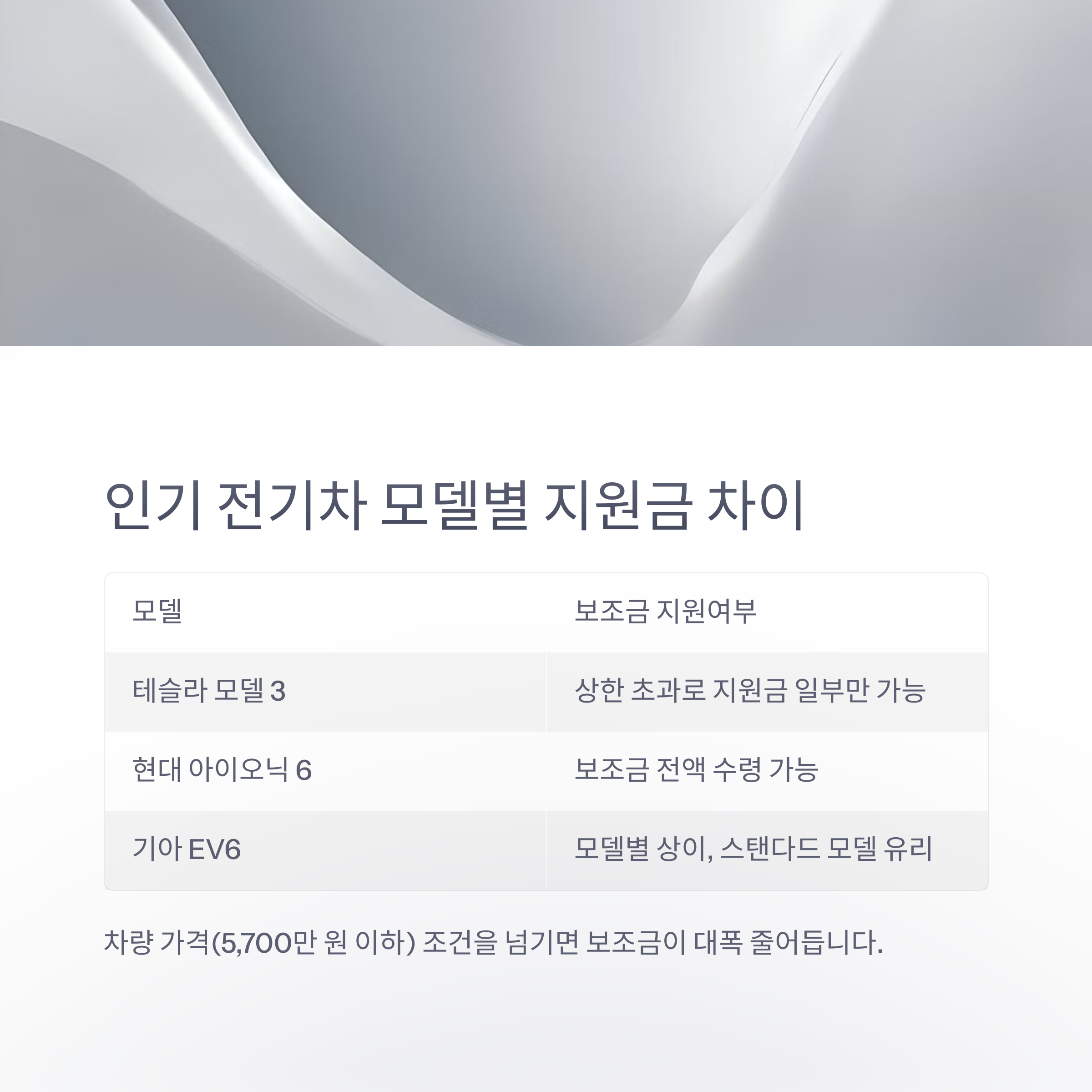 4. 인기 전기차 모델별 지원금 차이 주의