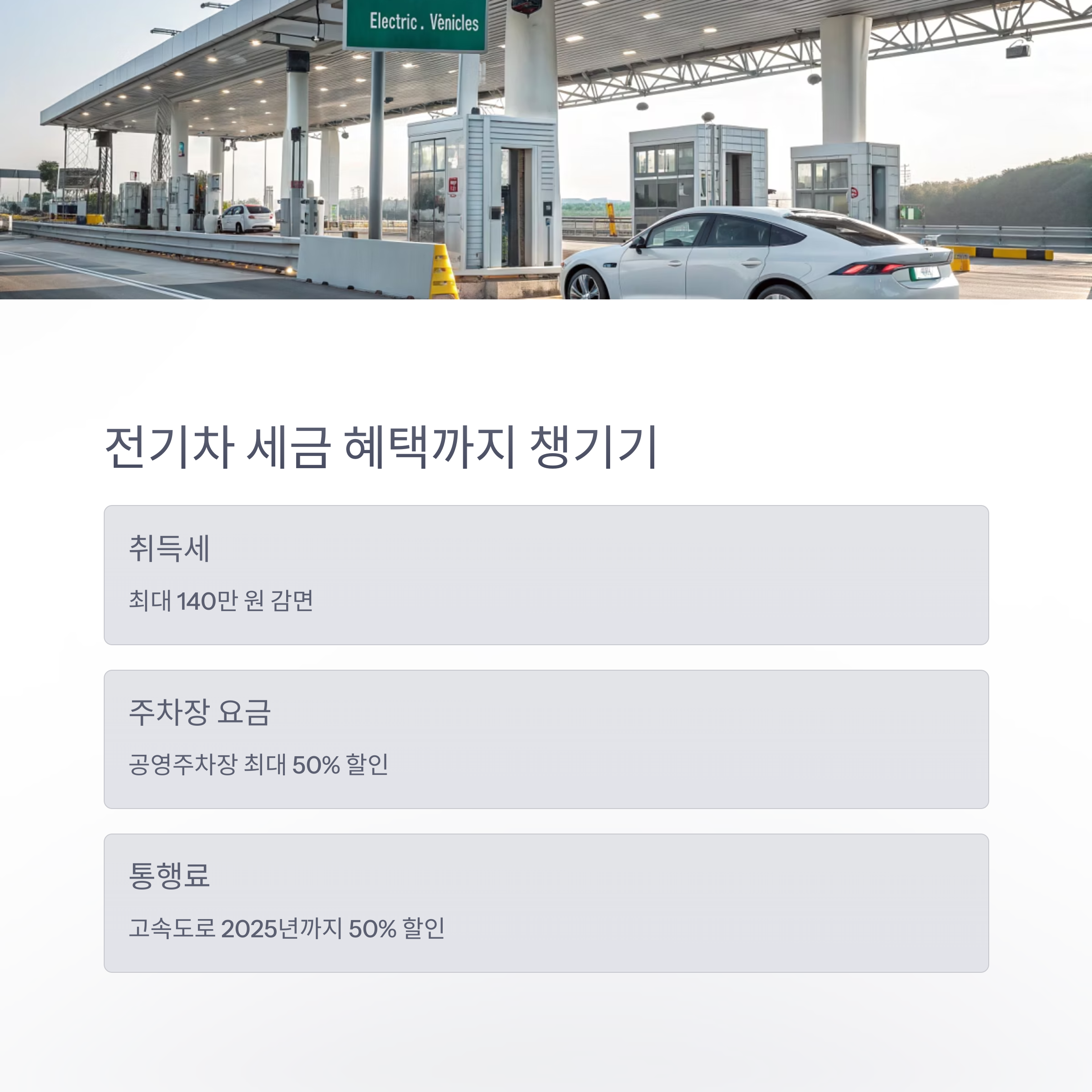 - 고속도로 통행료 할인: 2025년까지 50% 할인 지속