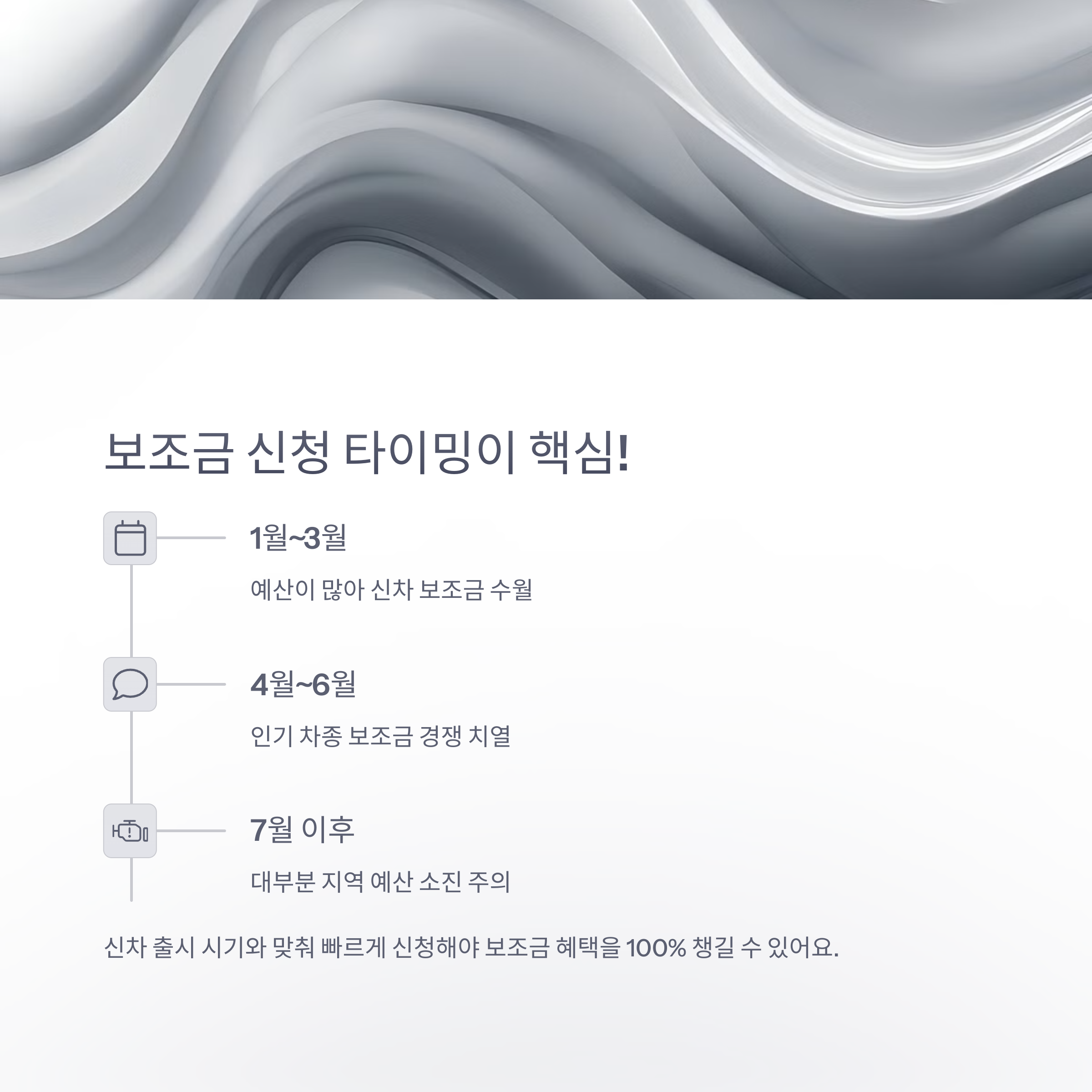 - 1월~3월: 예산이 많아 신차 보조금 수월