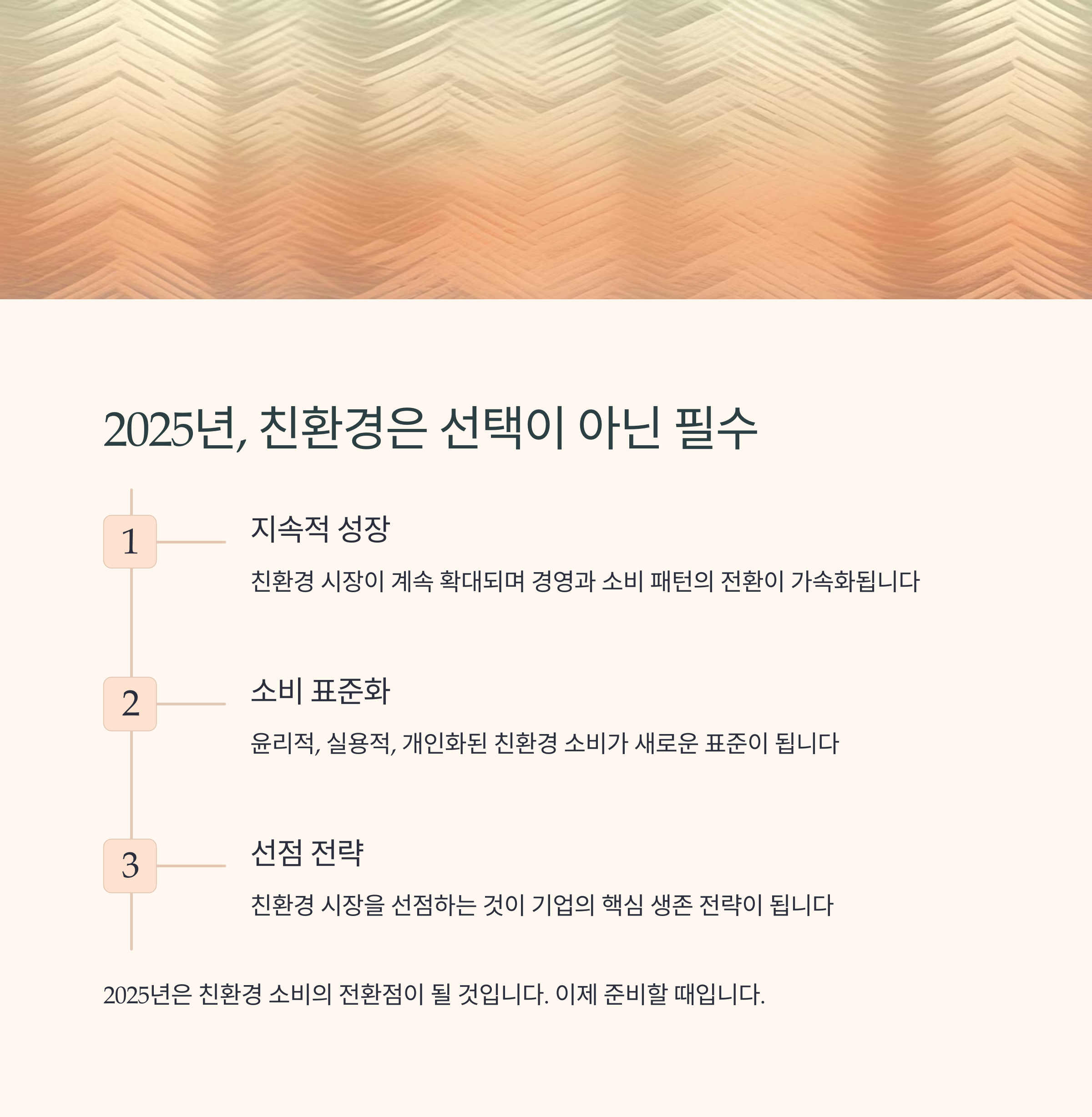 2025년은 친환경 소비가 더욱 강력하게 자리 잡을 해가 될 것입니다.